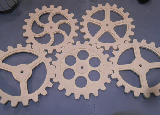Five Wooden Gears 10 Inch gear, cogs, Wood Gears, Steampunk Industrial Design - Five 10 Inch Gears With Five Different Design
