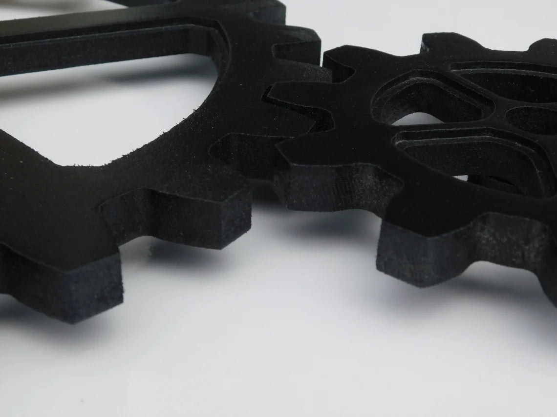 They are constructed of quality MDF so they have zero knots and/or wood grain. When these are painted black they look like metal gears. The biggest difference is the weight; they are much lighter than metal gears. They weigh as much as a typical picture frame so they are easy to install.